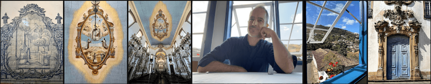 Com essa lembrança, encarei minha semi-ignorância ao visitar Ouro Preto, Congonhas, Tiradentes e São João del Rei. Com a ajuda do ChatGPT, descobri Minas com olhos novos, tal qual um emboaba*. E foi fascinante. A Inconfidência foi contemporânea da Revolução Francesa. As reclamações que os brasileiros faziam da Coroa portuguesa eram muito parecidas com as dos americanos recém-independentes. Todo mundo tentava esconder um pouco de ouro da Receita Federal, inclusive dentro de santos ocos feitos de madeira. Por que pagar impostos tão altos? Pro quinto dos infernos, portugueses descarados! Esse quinto era 20% de taxa sobre o ouro** explorado nas Minas Gerais, muito mais alto do que o atual IOF de 3,5%.